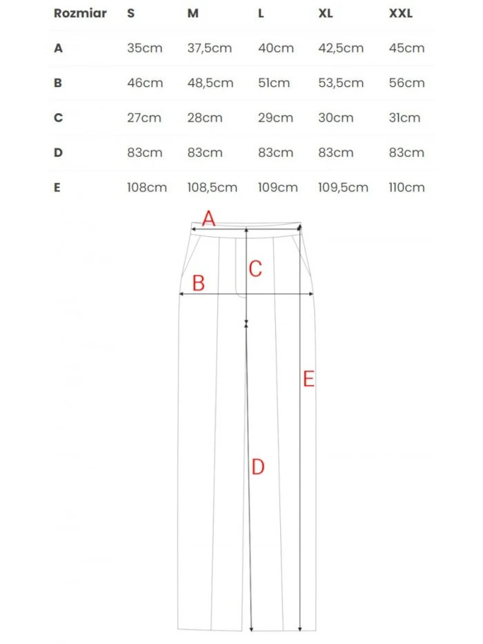| E | 108cm | 108,5cm | 109cm | 109,5cm | 110cm |