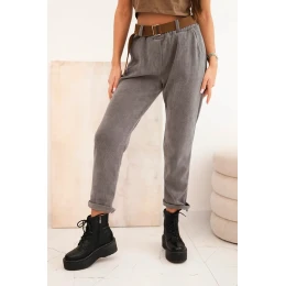 Dámské kalhoty s páskem kordové tmavě šedé