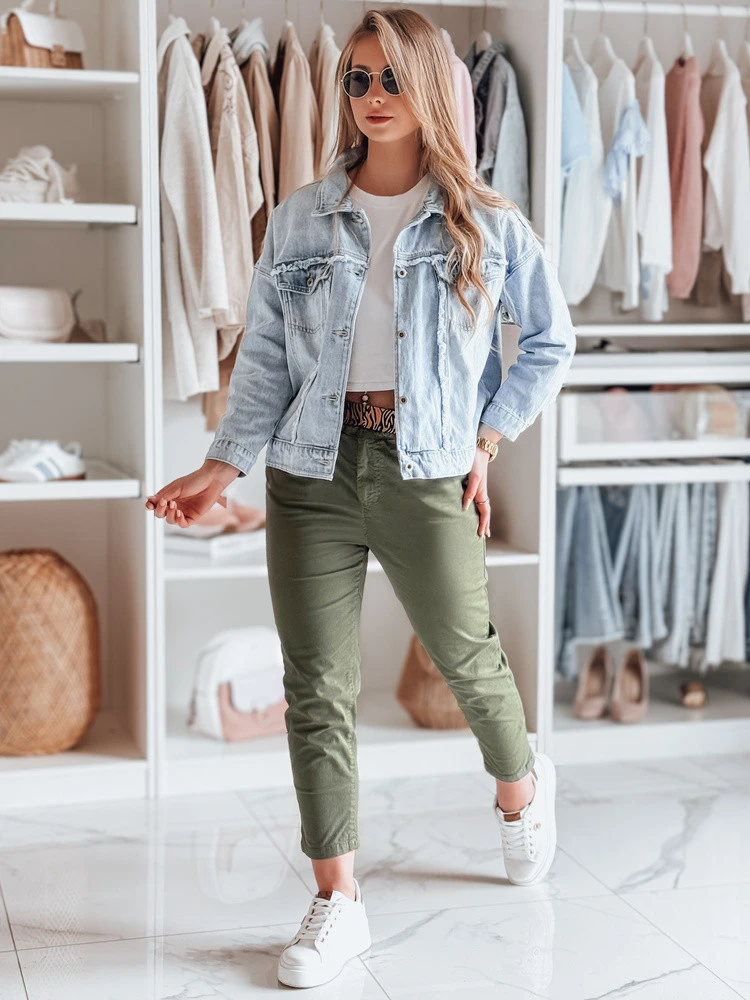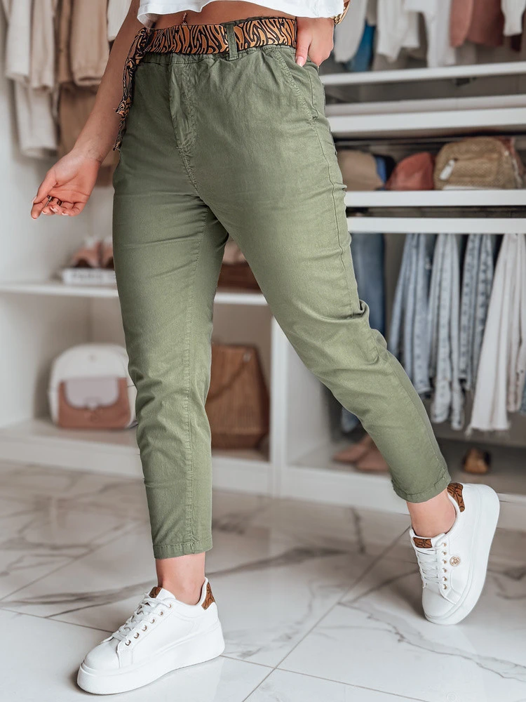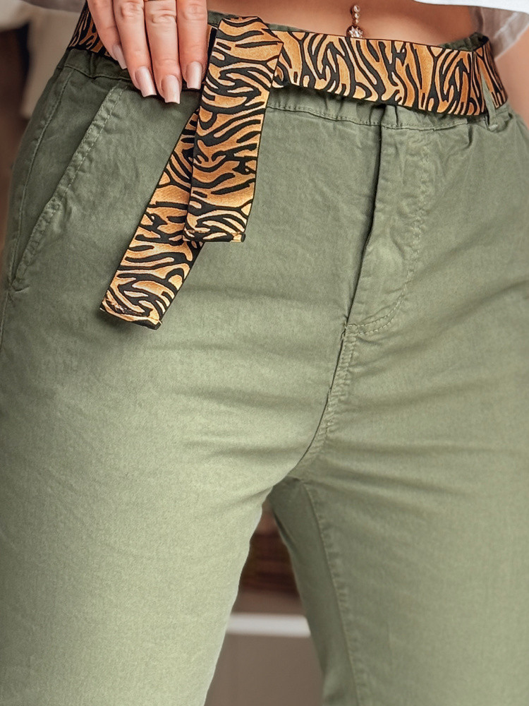 Dámské kalhoty s páskem MADELINA uy2628 khaki barvy