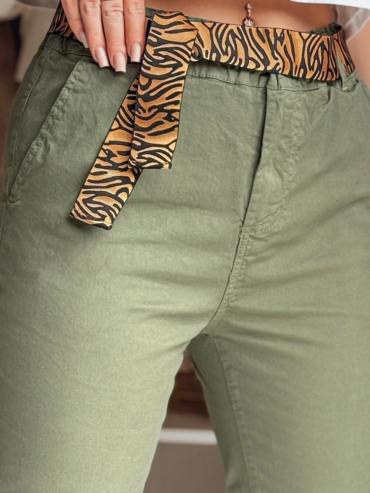 Dámské kalhoty s páskem MADELINA khaki FashionStreet UY2628