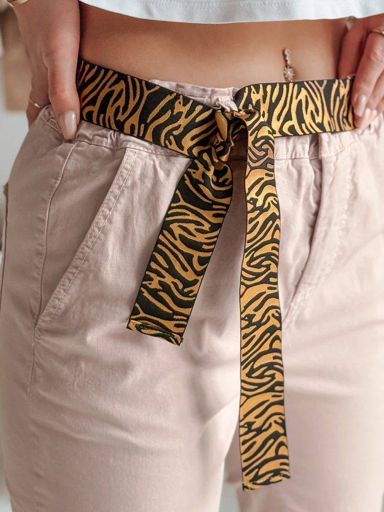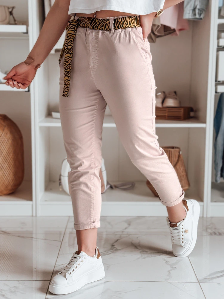 Dámské kalhoty s páskem MADELINA růžové FashionStreet UY2627