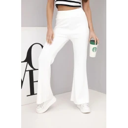 Stylové a pohodlné dámské kalhoty s rozšířenými nohavicemi jsou skvělou volbou pro ženy, které ocení módní vzhled a komfort. Elastický materiál s příměsí viskózy a elastanu zajišťuje dokonalé přizpůsobení postavě, a široký pas s vysokým střihem zvýrazňuje postavu a dodává pohodlí při každodenním nošení.
