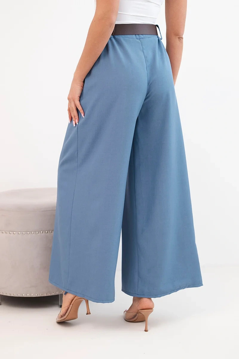 Dámské kalhoty s širokou nohavicí a páskem jeansové modré
