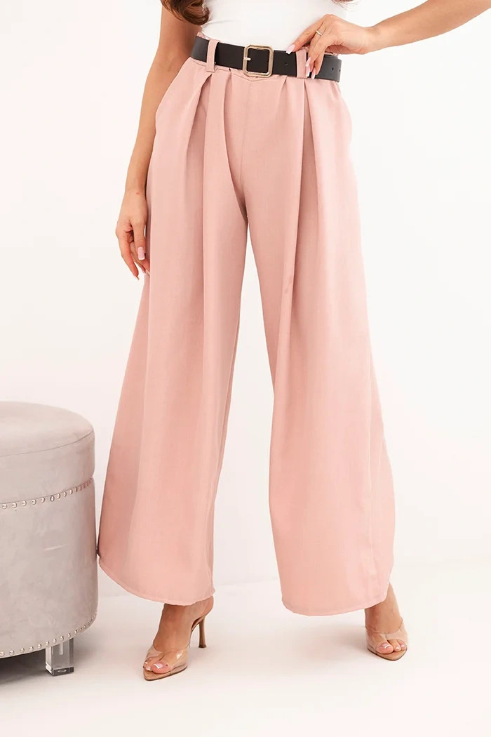 Dámské kalhoty s širokou nohavicí a páskem tmavě pudrově růžové
