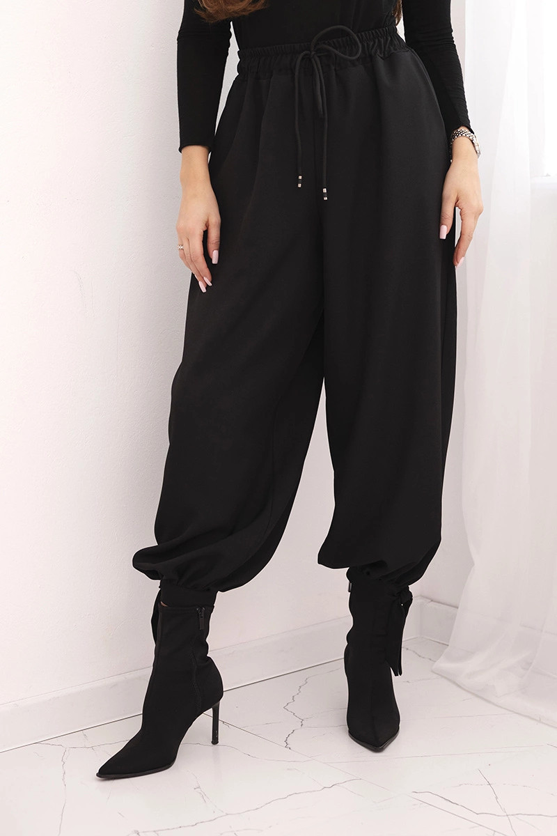 Dámské kalhoty s širokou nohavicí a zavazováním dole černé
