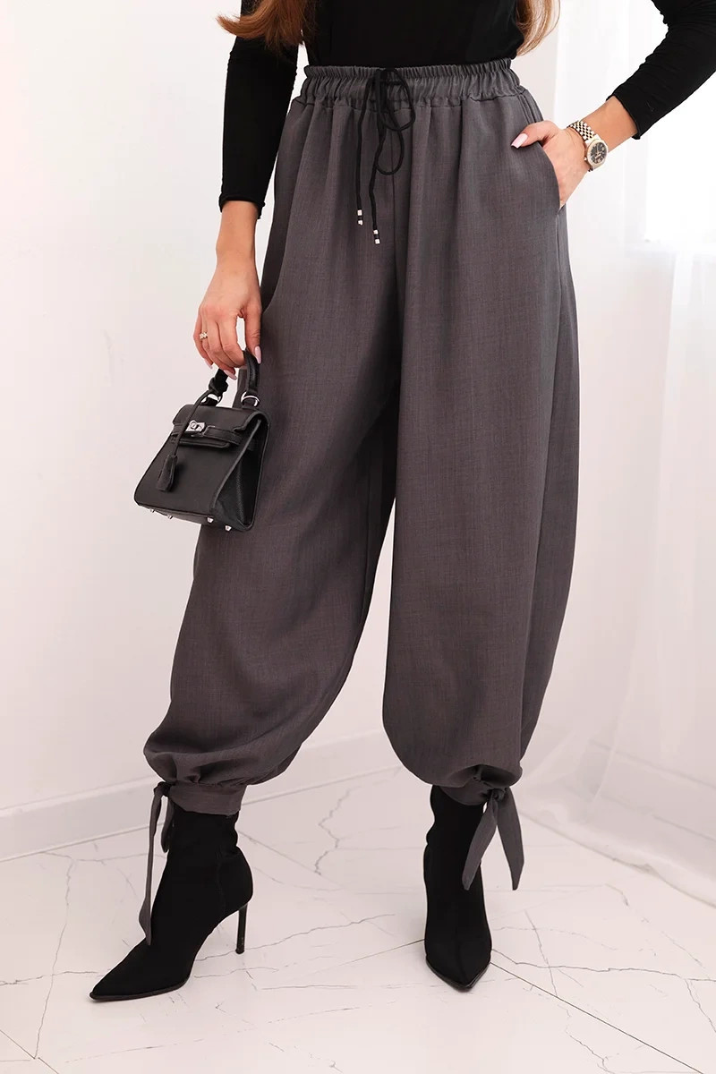 Dámské kalhoty s širokou nohavicí a zavazováním dole grafitové