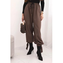 Dámské kalhoty s širokým model 21780873 a zavazováním dole mocca - K-Fashion