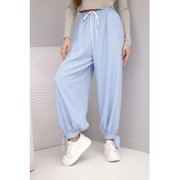 Dámské kalhoty s širokým model 22018656 a zavazováním dole modré - K-Fashion