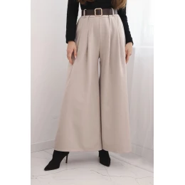 Dámské kalhoty s širokým nohavicí a pásem béžové