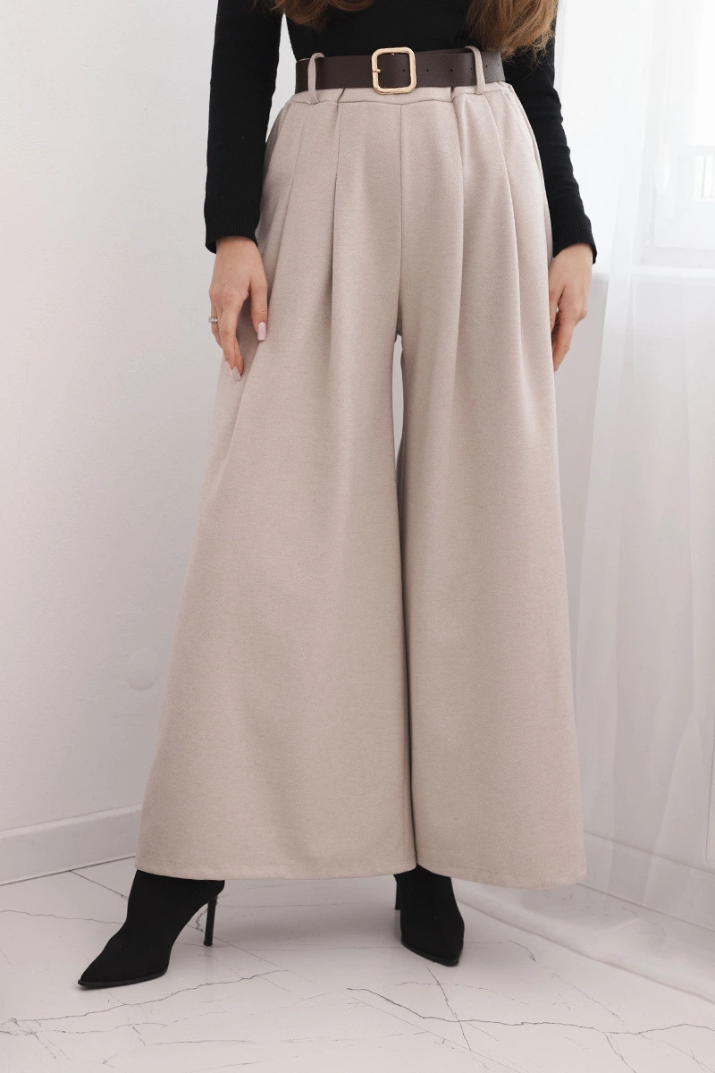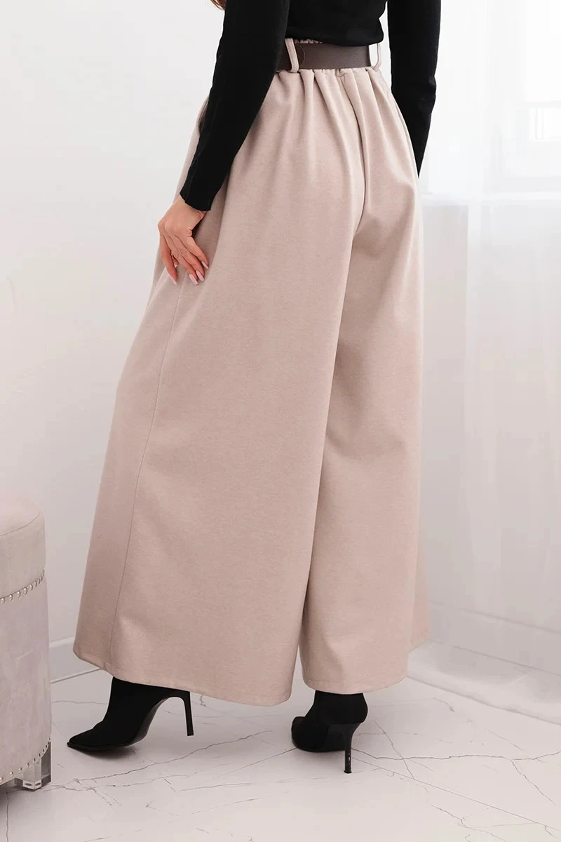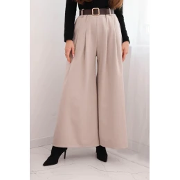 Dámské kalhoty s širokým nohavicí a pásem béžové