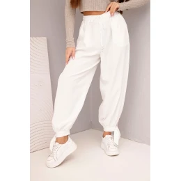 Dámské kalhoty s širokým nohavicí a vázáním dole bílé