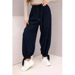 Dámské kalhoty s širokým nohavicí a vázáním dole modré