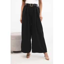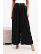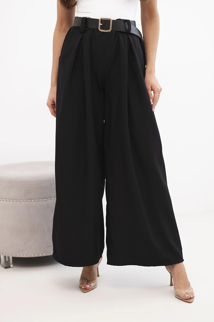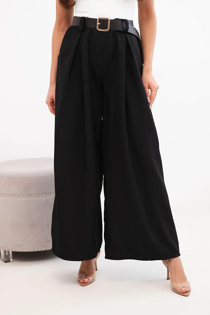 Dámské kalhoty s širokým střihem a páskem černé