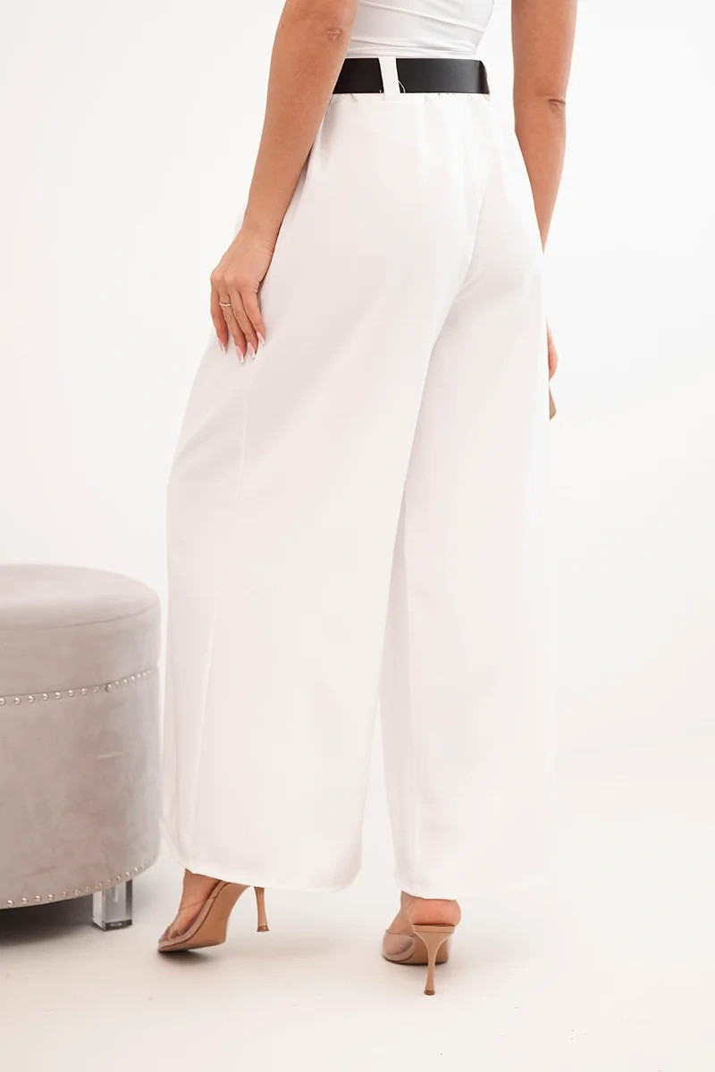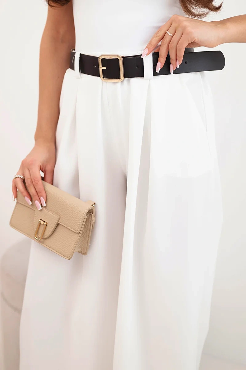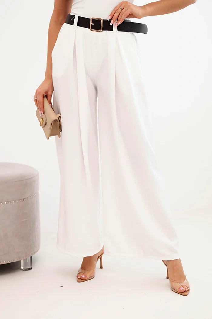 Dámské kalhoty s širokými nohavicemi a ecru páskem ecru