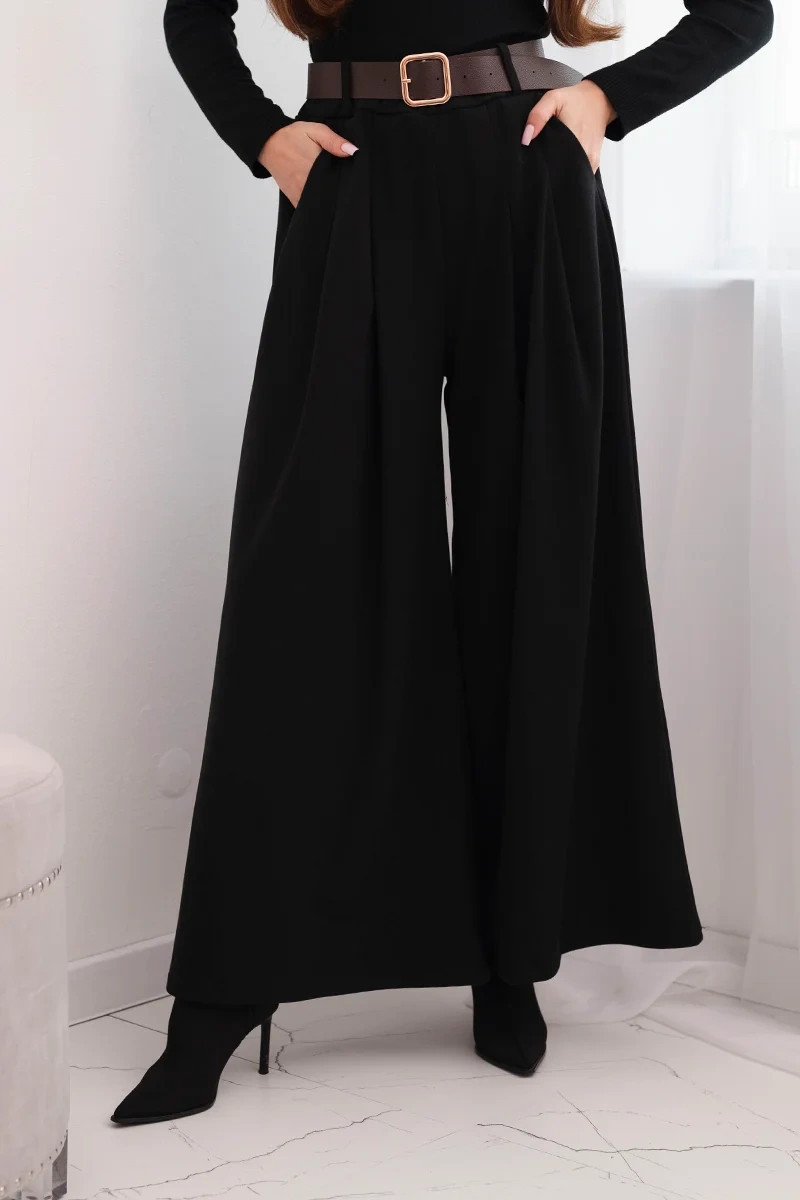 Dámské kalhoty s širokými nohavicemi a pásem černé
