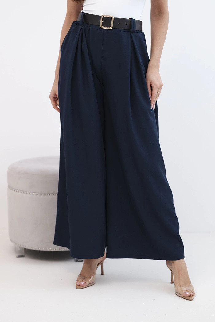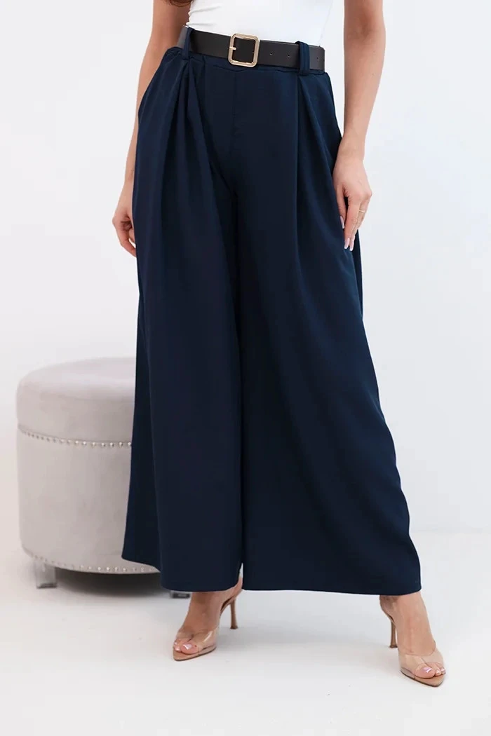 Dámské kalhoty s širokými nohavicemi a páskem granátové