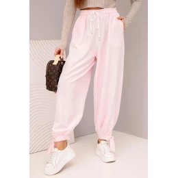 Dámské kalhoty s širokými nohavicemi a zavazováním dole cukrově růžový