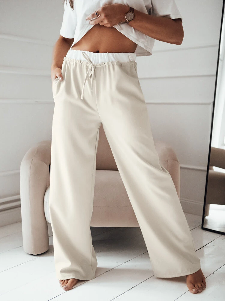 Dámské kalhoty s širokými nohavicemi béžové Dstreet model 21977031 - FashionStreet