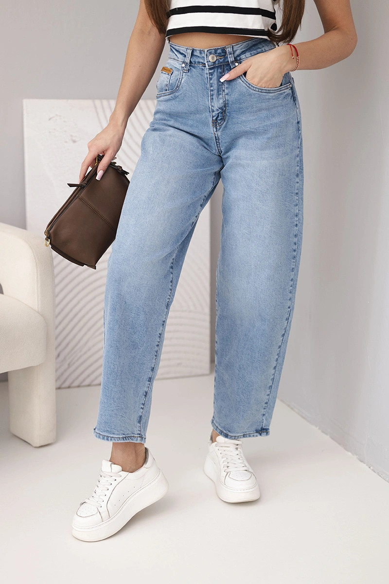 Dámské kalhoty s vysokým pasem a nohavicemi modré model 21961293 - K-Fashion