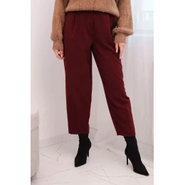 Dámské kalhoty s vysokým pasem a záhyby bordové
