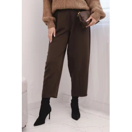 Dámské kalhoty s vysokým pasem a záhyby hnědé