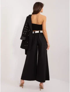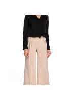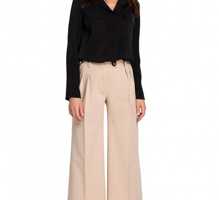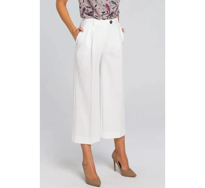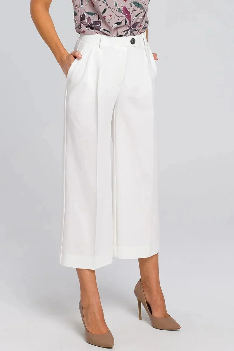 Volné jednobarevné cullottes vylepší každý outfit, a to jak ten méně, tak i ten elegantnější. Mohou úspěšně nahradit elegantní sukni nebo být náhradou za klasické džíny nošené každý den. Kalhoty se zipem a knoflíky.
