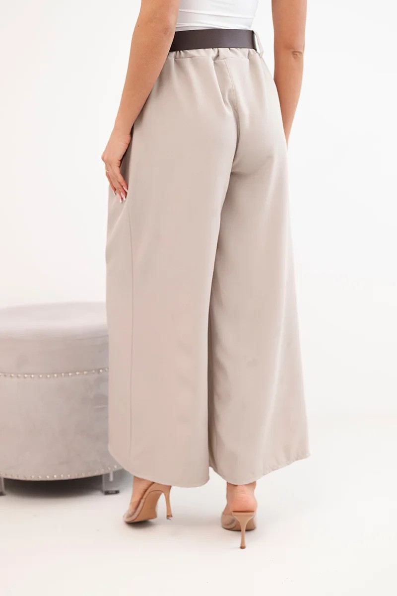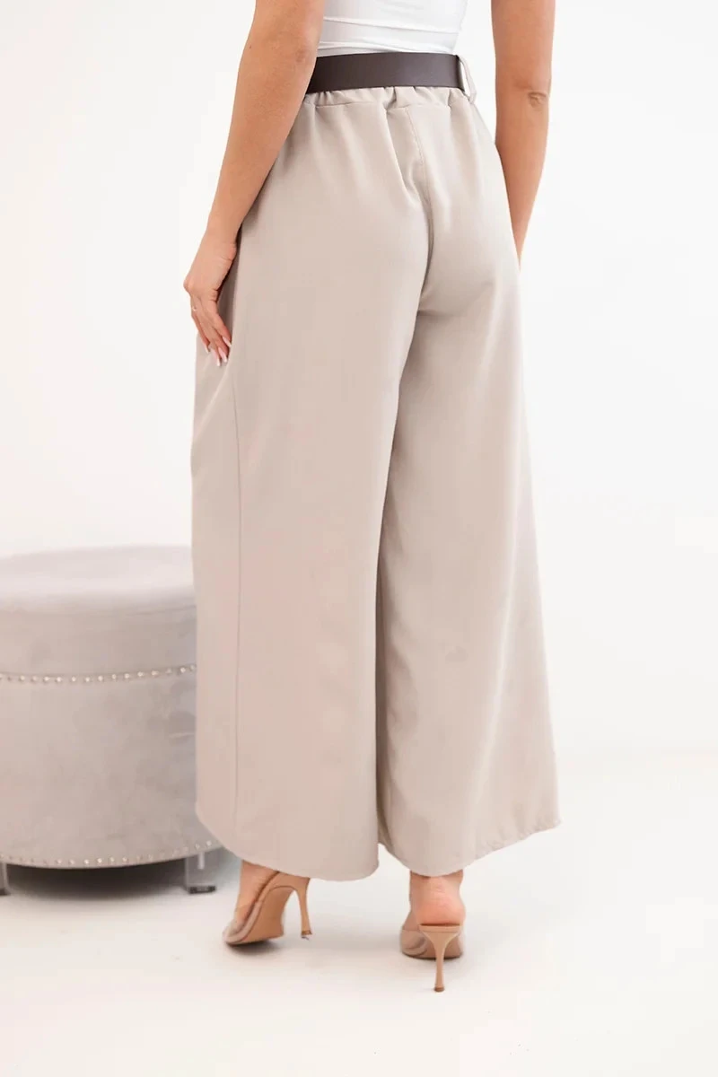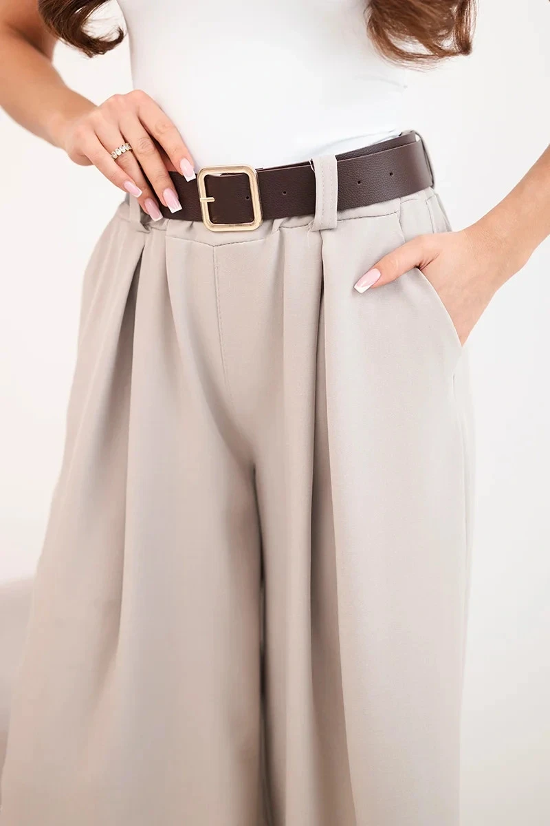 Dámské kalhoty se širokými nohavicemi a páskem tmavě béžové