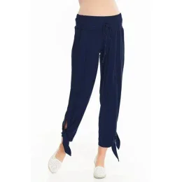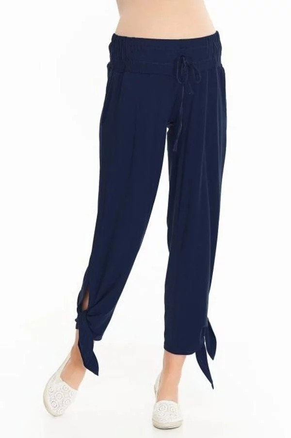 Módní těhotenské kalhoty vyrobené z elastické viskózy v tmavě modré barvě.