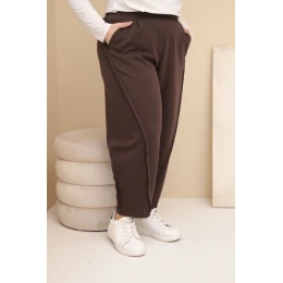 Dámské kalhoty z bavlny Plus Size volného střihu s vysokým pasem hnědé