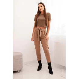 Dámské kalhoty z bavlny s vázáním v pase a nohavicemi model 21768704 - K-Fashion