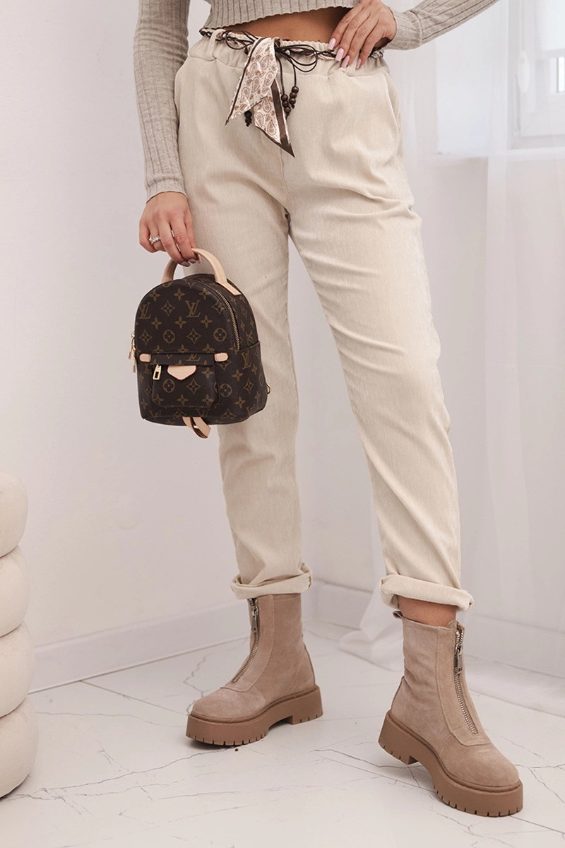 Dámské kalhoty z viskózy s šátkovým páskem béžové