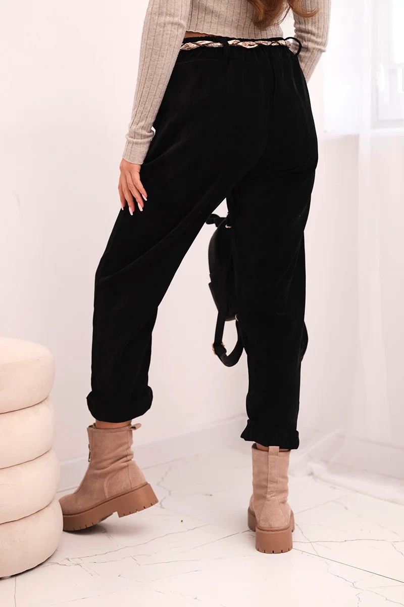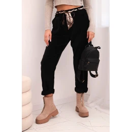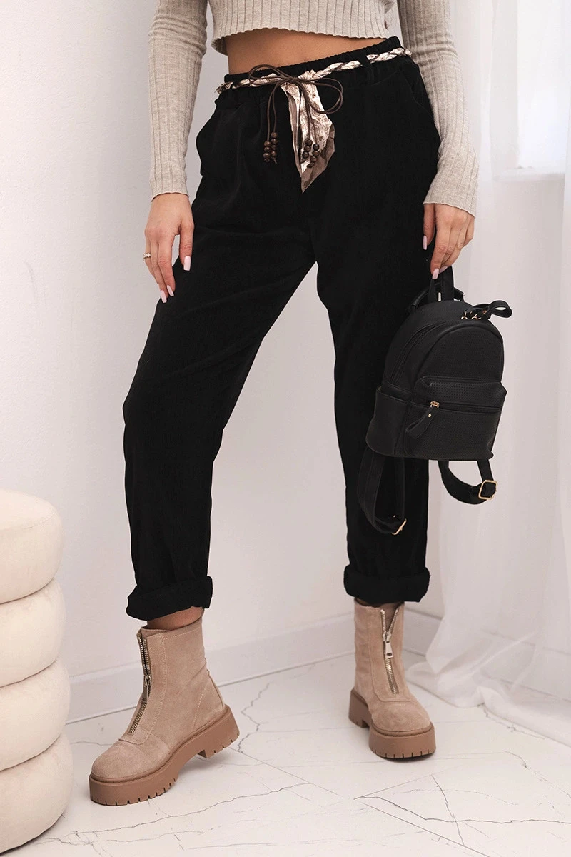 Dámské kalhoty z viskózy s šátkovým páskem černé