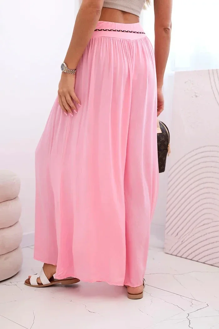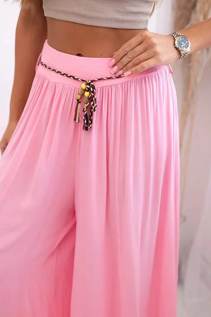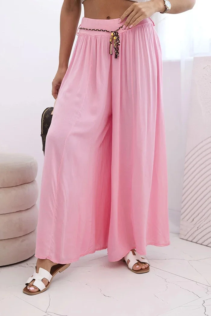 Dámské kalhoty z viskózy se širokými nohavicemi bonbónově růžová
