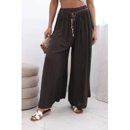 Dámské kalhoty z viskózy se širokými nohavicemi hnědý