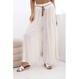 Tyto výjimečné dámské široké kalhoty z viskózy jsou skvělou volbou pro ženy, které si cení pohodlí a stylu. Ušité z lehké, prodyšné látky krásně sedí na postavě a zajišťují pohodlí po celý den. Široké nohavice jim dodávají módní, letní charakter a přiložený pletený pásek přidává originální kouzlo a zdůrazňuje pas.