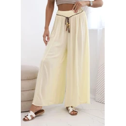 Dámské kalhoty z viskózy se širokými nohavicemi žlutý
