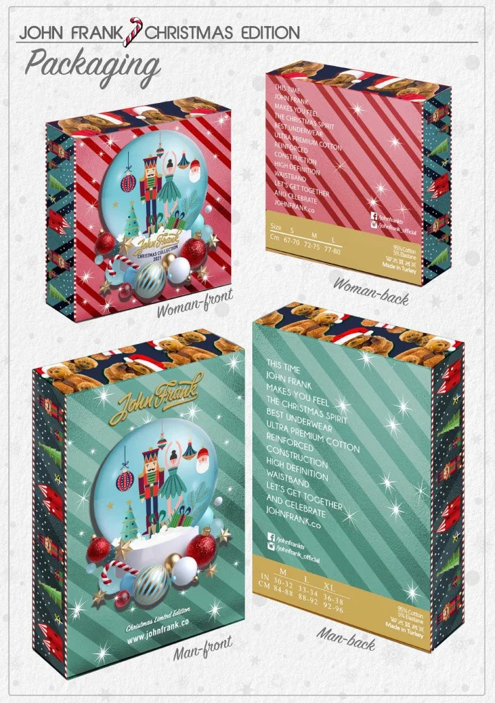 Dámské kalhotky střihu hipster od značky John Frank z limitované vánoční kolekce. Bavlněné kalhotky s módně zpracovaným potiskem jsou velmi příjemné na dotek a pohodlné při nošení. Jemná, středně široká guma v pase má kolem logo John Frank. Do vnitřního dílu je zapracován bavlněný klínek pro komfortní nošení. Slaďte se v kolekci ON & ONA, dámské kalhotky i pánské boxerky naleznete u nás v jednom designu, buďte IN s partnerem.
