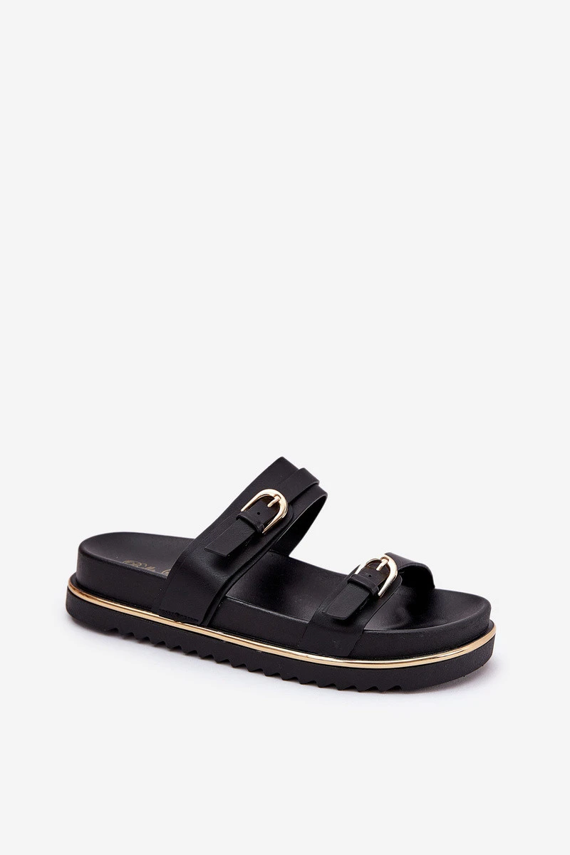 Dámské Klapky Hladké Na Platformě S Popruhy A Přezkami Černé Ziferte
