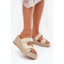 Dámské Klapky Na Klínu S Pletením A Přezkami Béžové model 21697351 - Boto