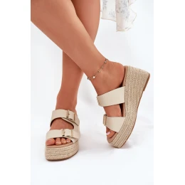 Dámské Klapky Na Klínu S Pletením A Přezkami Béžové Pasinea