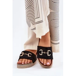 Dámské Klapky Na Platformě Se Zlatou Dekorací A Leskem Černé Morisela
