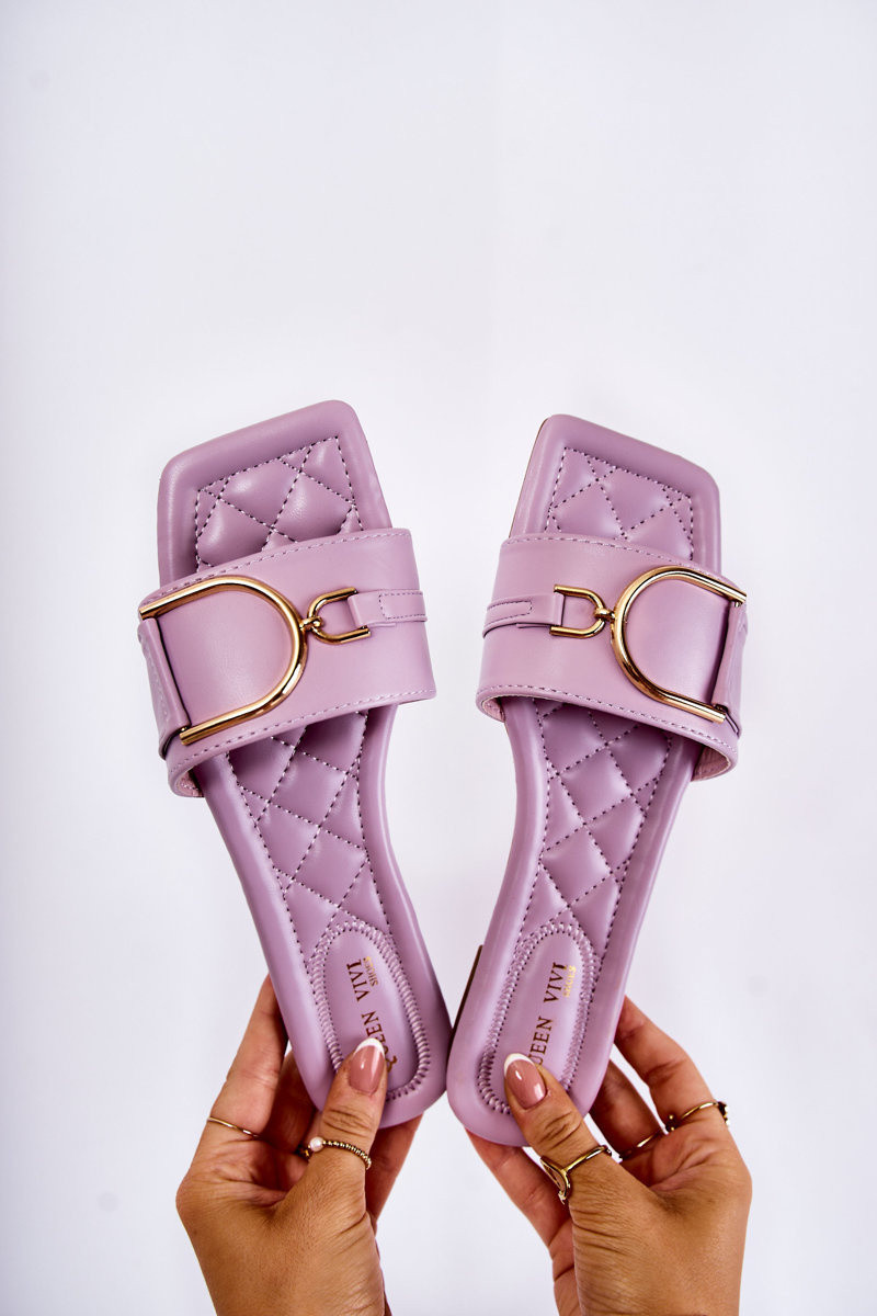 Klasické dámské pantofle jsou vyrobeny z eko kůže. Na předním pásku mají ozdobu. Pohodlí při používání zajistí měkká, prošívaná stélka z eko kůže. Boty jsou nasazeny na plochém podpatku a protiskluzové podrážce. Skvělý model, který skvěle poslouží v horkých dnech! Mají otevřenou hranatou špičku. Při výběru velikosti použijte tabulku velikostí.