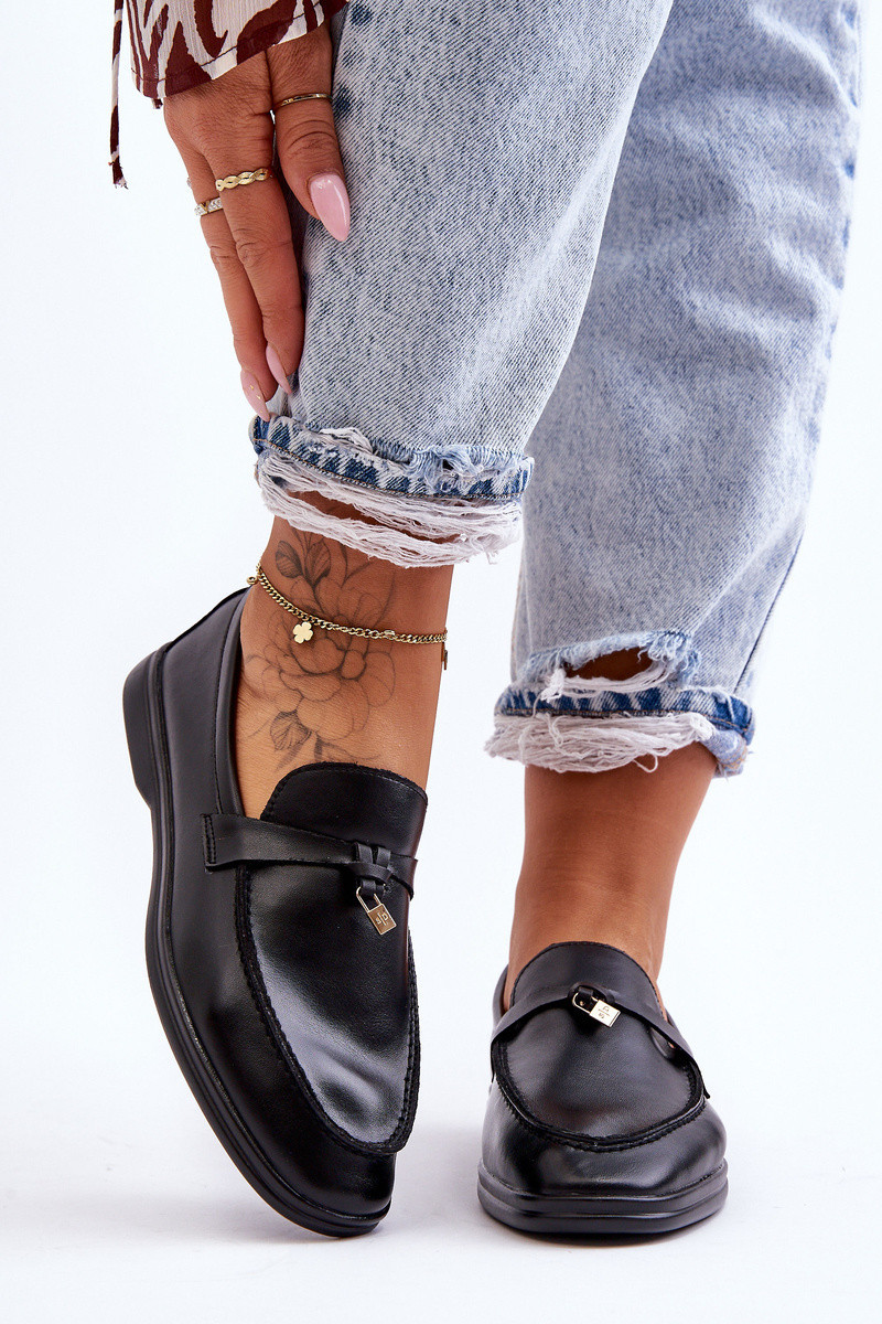 Klasické přezky dámské mokasíny jsou jistě vhodné pro mnoho stylů! Tento model by měl být ve vaší skříni! Mokasíny mají na přední straně pás s malou ozdobou. Tyto boty jsou vyrobeny z ekologické kůže. Jsou umístěny na plochém podpatku, díky čemuž jsou pohodlné. Při výběru velikosti se řiďte tabulkou velikostí.
