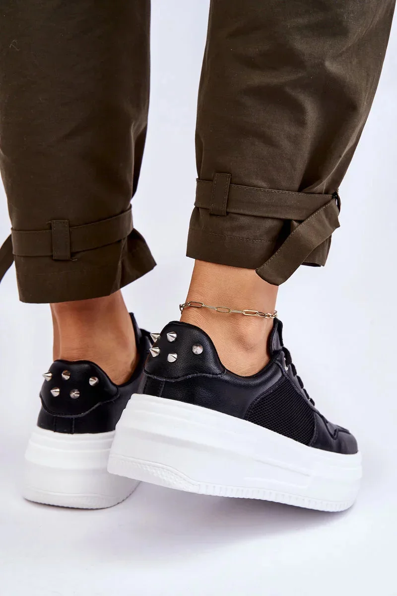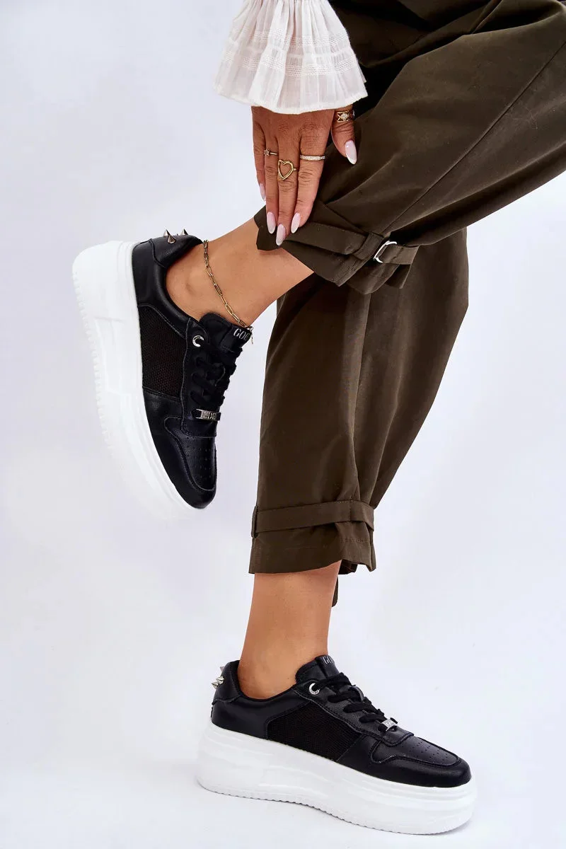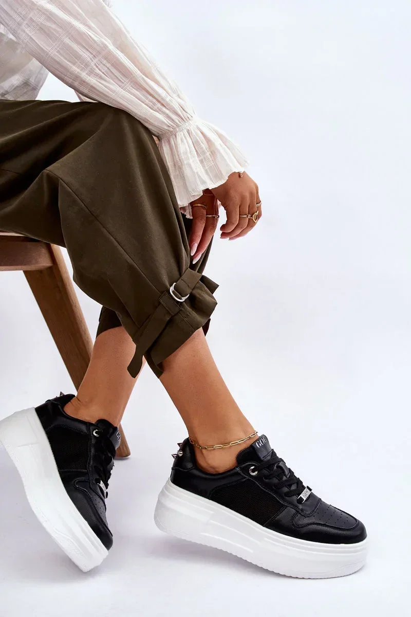 Oceňujete vysokou kvalitu a pohodlí při používání obuvi? Pokud ano, tyto boty jsou právě pro vás! Tenisky GOE jsou vyrobeny z přírodní kůže a vzdušné, síťované tkaniny. Vyztužený podpatek byl zdoben cvočky. Boty byly postaveny na masivní platformě. Při výběru velikosti se řiďte tabulkou velikostí.