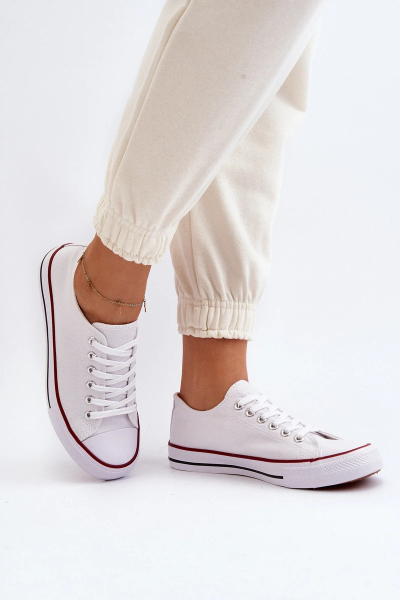 Dámské tenisky vyrobené z textilního materiálu. Odstavené na podrážce z pryže. Zaoblené špičky. Tento klasický střih jistě sladíte s téměř každým jarně letním oblečením se šaty, sukněmi a šaty. Při výběru velikosti se řiďte tabulkou velikostí.