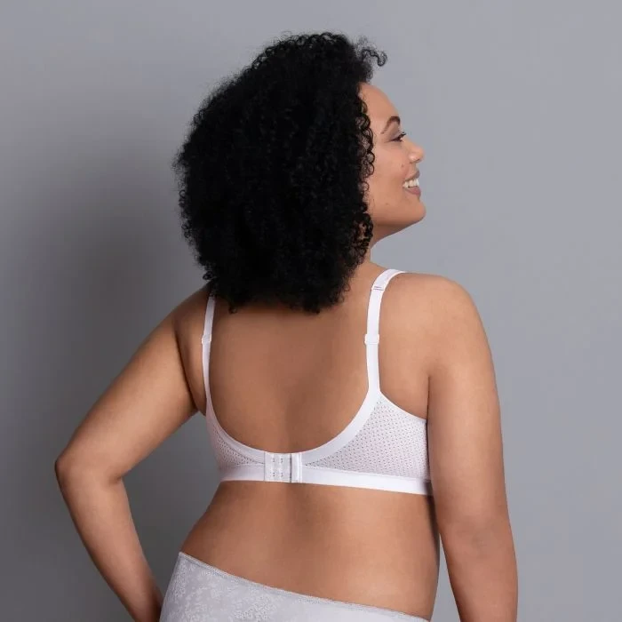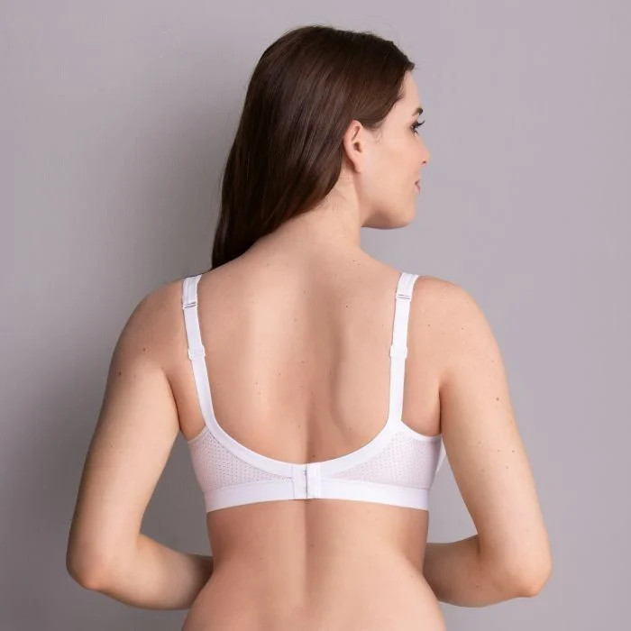 Široká, měkce vyztužená ramínka zmírňují zatížení zad a jsou pevně připevněna k prsní podpěře.