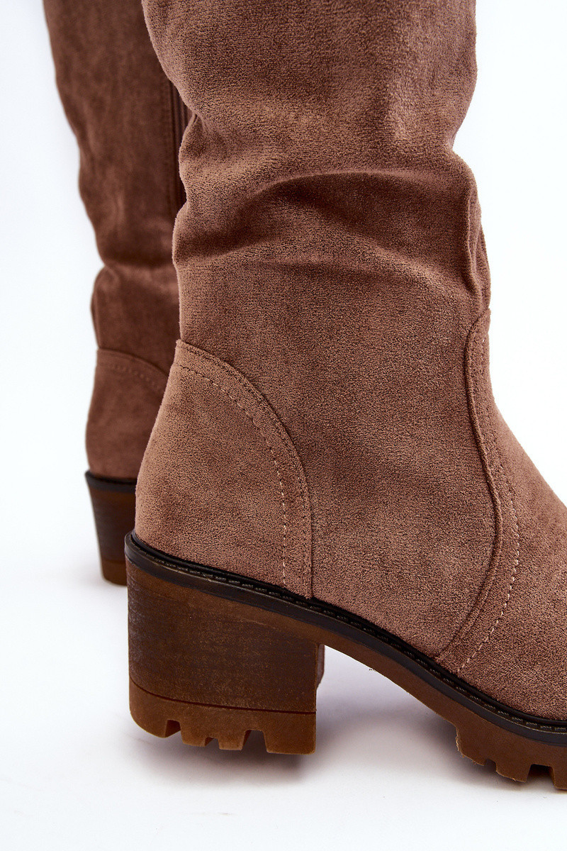 Dámské koleno vysoké kozačky na nízkém podpatku hnědé model 21637892 - Boto