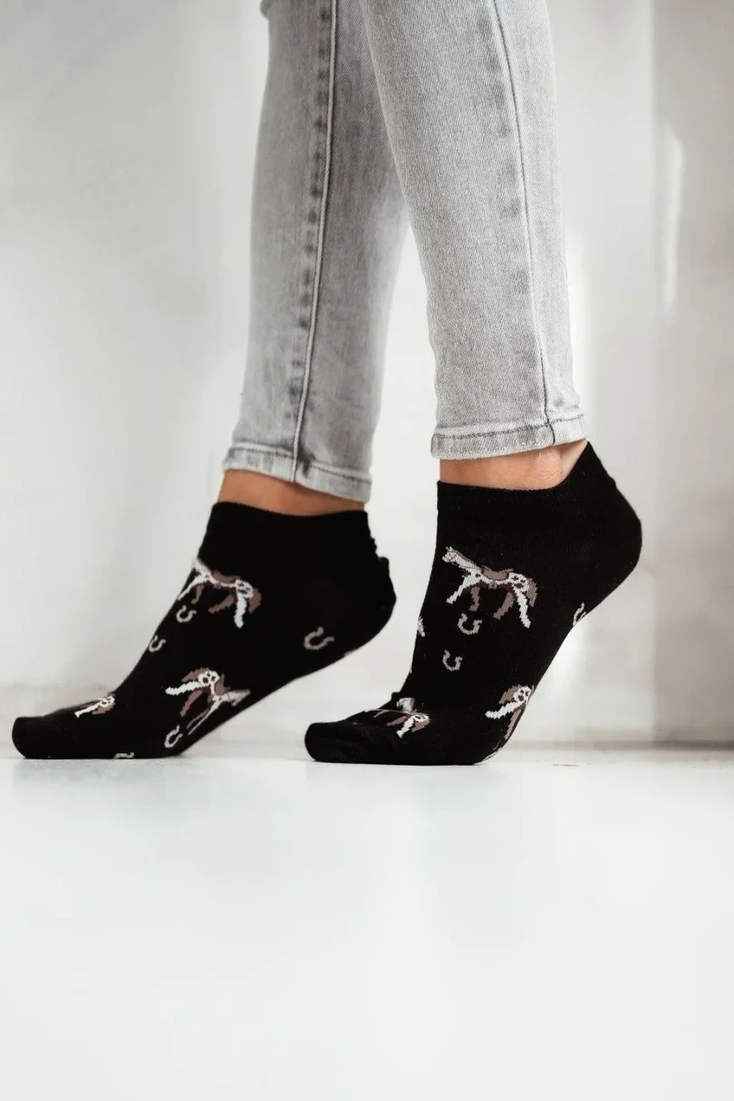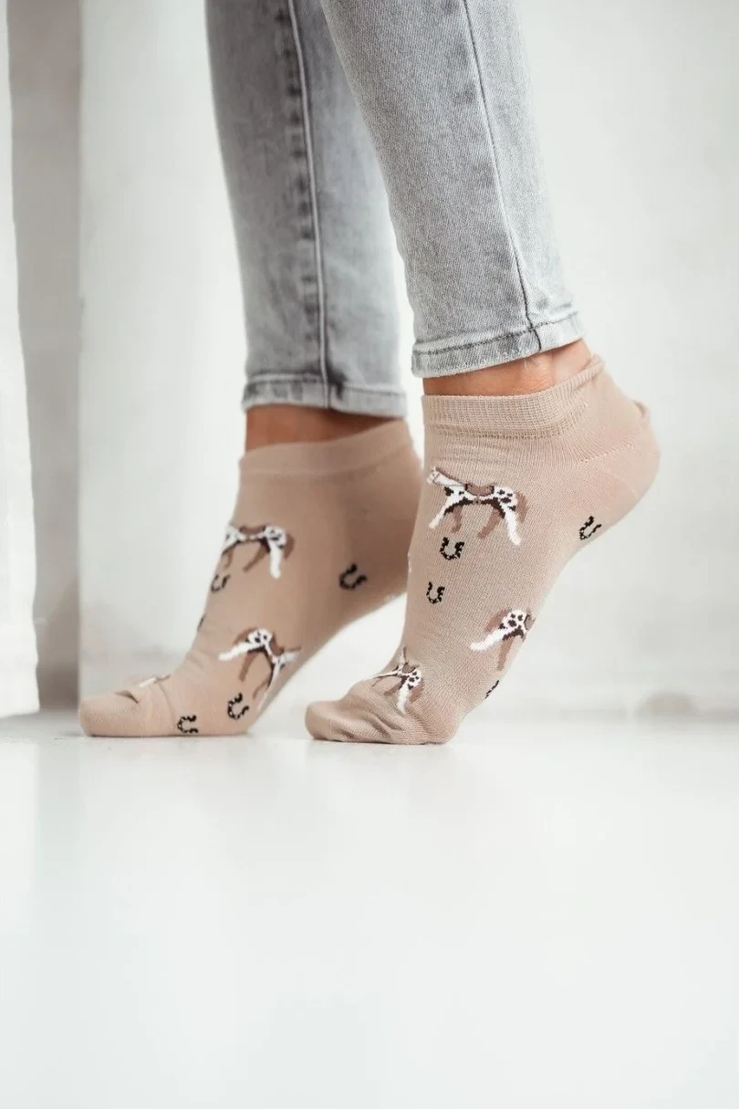 Roztomilé dámské koníčky! Jsou vyrobeny z měkké a prodyšné bavlny a poskytují pohodlí a komfort po celý den. Jejich jedinečný koňský vzor dodá charakter každému oblečení, takže jsou ideální volbou pro milovníky zvířat a přírody. Elastická tkanina zajišťuje dokonalé přizpůsobení, zatímco díky lehké konstrukci jsou ideální pro všechna roční období. Skvěle se hodí k teniskám, cvičkám i běžné obuvi.