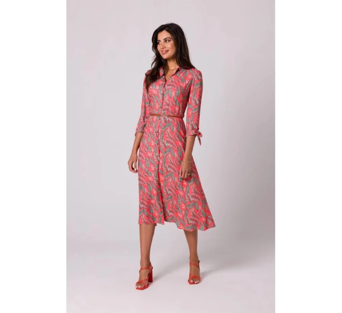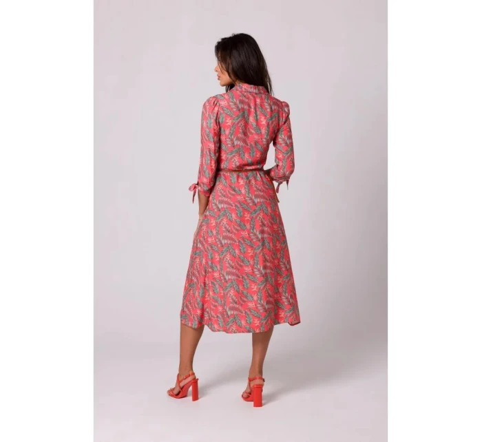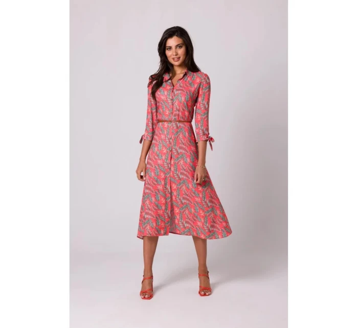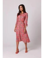 Dámské košilové šaty na knoflíky model 1 model 20328055 Tmavě oranžová se zelenou vzor - BeWear