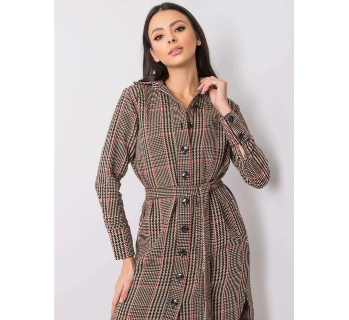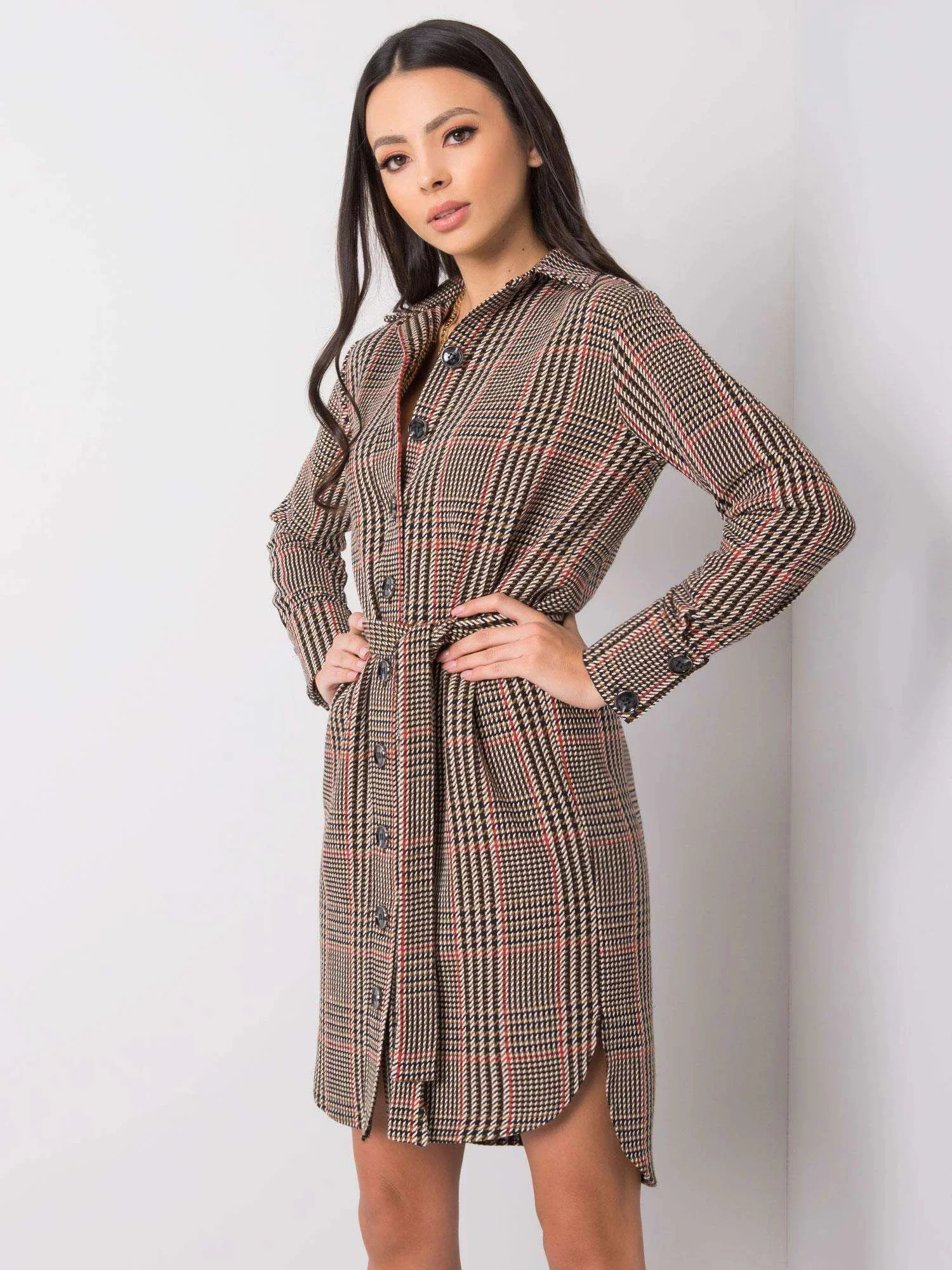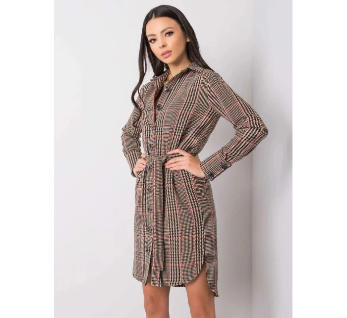 Produkt Dámské kostkované šaty model 15059153 - FPrice prodáváme v těchto velikostech: S-36a barvách hnědá mix2016102783367